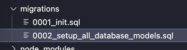 • 0002_setup_all_database_models.sql was generated when we ran pnpm migrate:new "setup all database models".