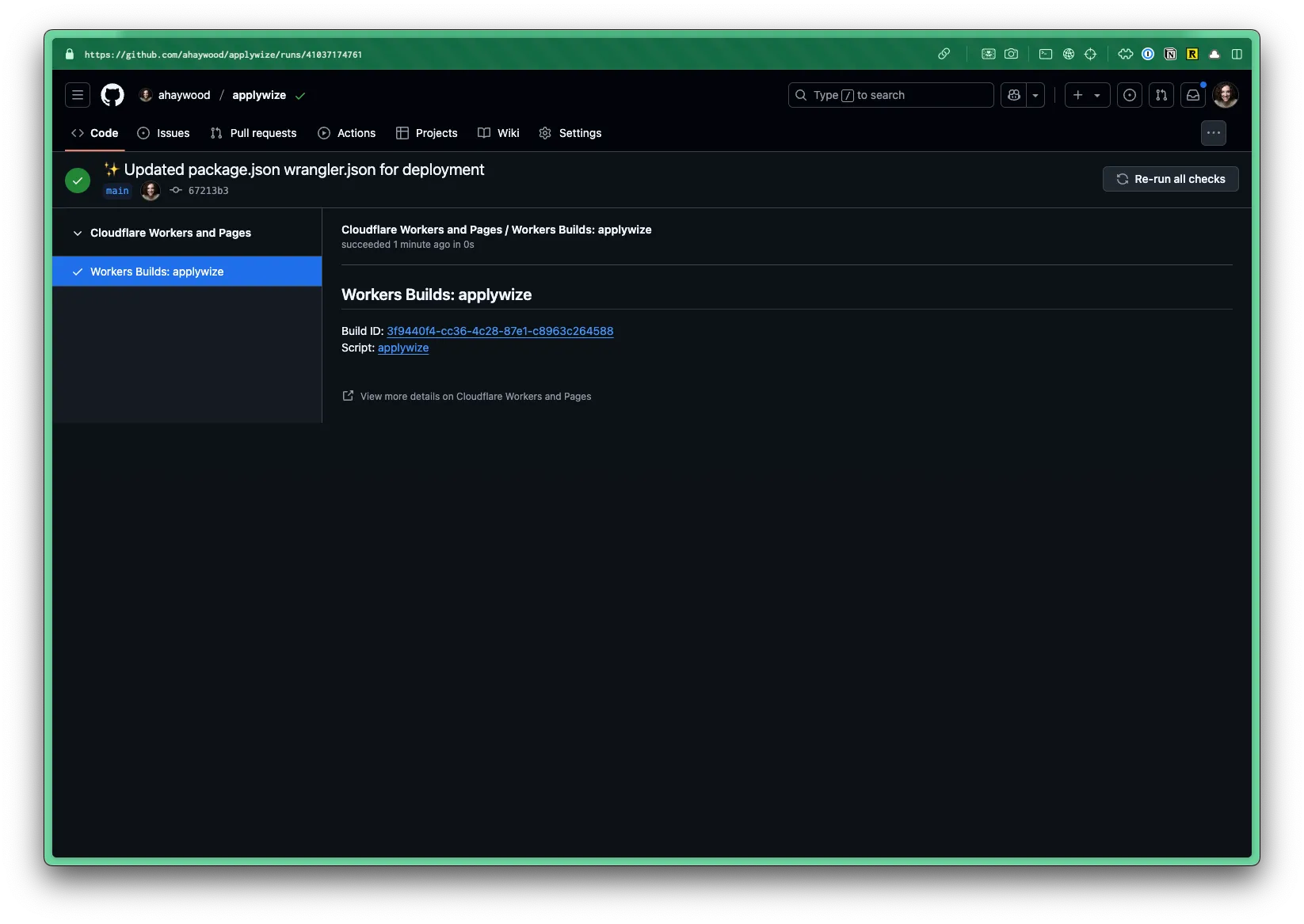 Once the checks have passed and the build is successful, the yellow dot will change to a green checkmark.